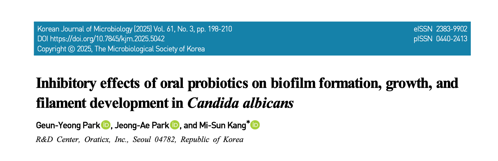 A new peer-reviewed study published in the Korean Journal of Microbiology (2025, Vol. 61, No. 3) reports that two proprietary oral probiotic strains, Weissella cibaria CMU (OraCMU) and CMS1 (OraCMS1), demonstrate strong antifungal activity against Candida albicans—the primary pathogen responsible for oral candidiasis (commonly known as oral thrush).